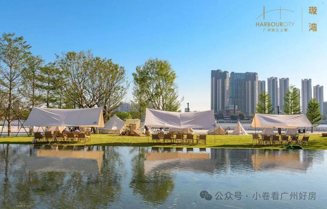 自带18万㎡船悦韶光公园,超60万㎡都邑绿洲,项目约18万㎡的船悦韶光公园,配套儿童公园、大草坪、羽毛球场、篮球场等,下楼即可享用运动,野营,跑步等文娱息闲体例,延续到广钢旧址公园,组成超60万㎡的T型都邑绿轴。